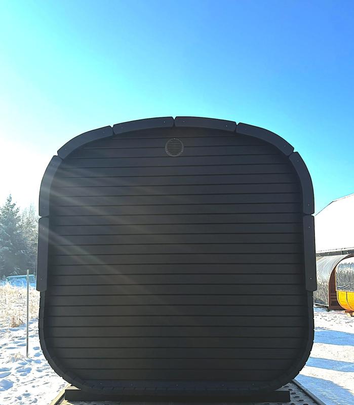 Breite und Höhe der Sauna 220 cm, Tiefe der Sauna 150 - 200 cm.